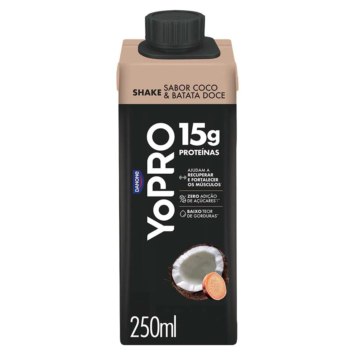 YoPro Shake Coco com Batata-Doce é uma bebida láctea UHT da Danone, ideal para quem busca uma opção prática e saborosa de lanche proteico.