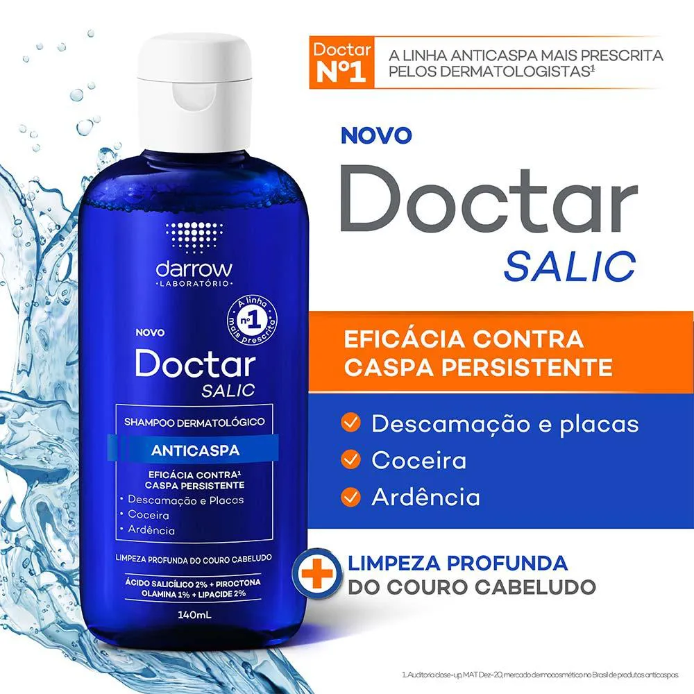 Doctar Salic é um shampoo dermatológico de tratamento anticaspa indicado para a redução de estados descamativos persistentes atuando contra couro cabeludo com descamação, coceira e ardência.