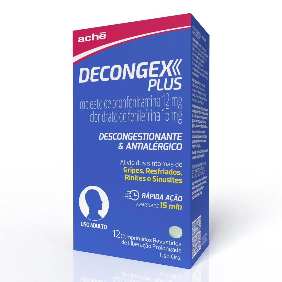 Decongex Plus Maleato de Clorfeniramina 12mg + Cloridrato Fenillefrina 15mg 12 comprimidos