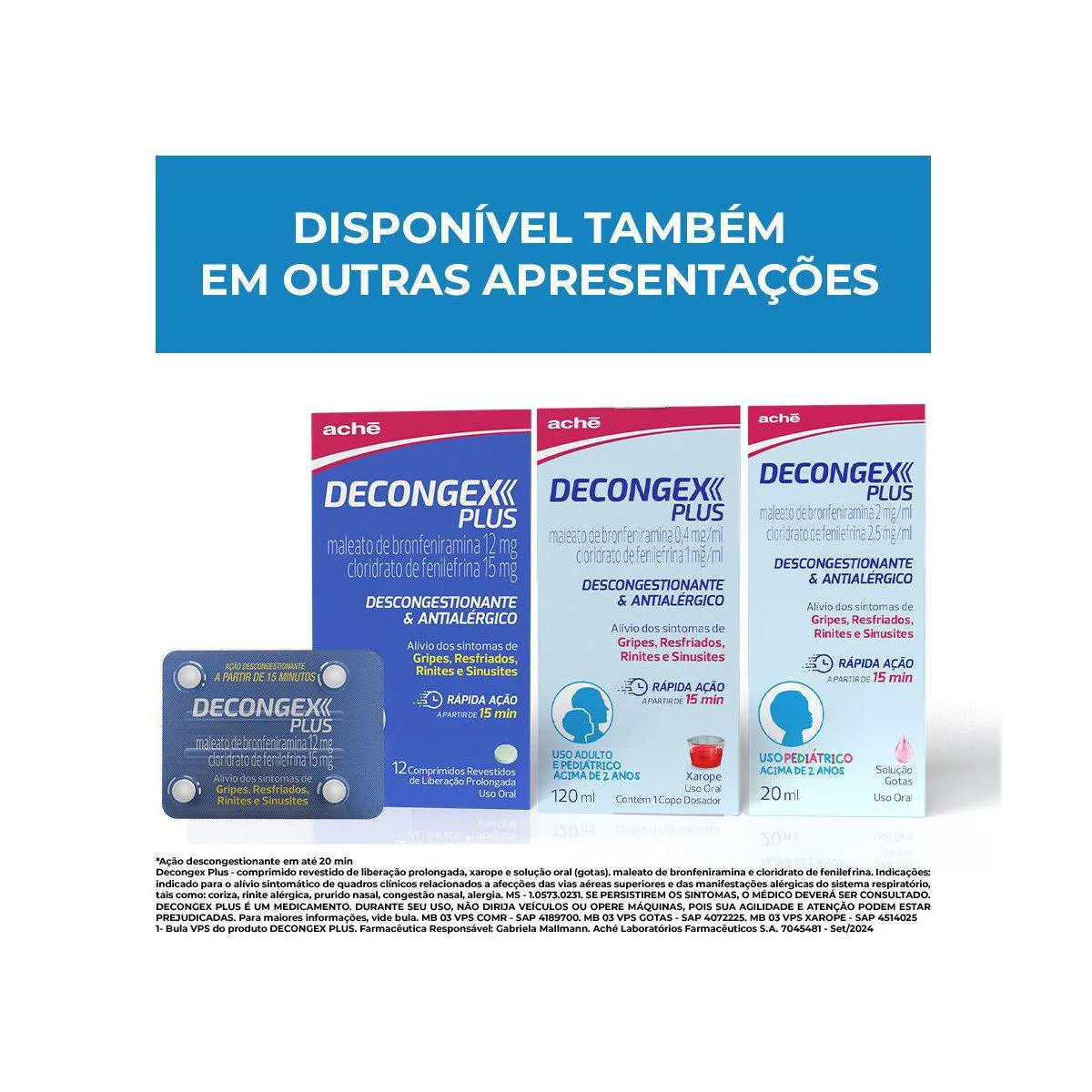Decongex Plus é um medicamento indicado para crianças acima de 2 anos, cuja formulação é composta por um descongestionante (desentupimento) nasal de efeito rápido e um antialérgico, que controlam e reduzem os sintomas relacionados a gripe, resfriado, rinite e sinusite (doença que afeta as cavidades existentes ao redor do nariz) (alérgicas ou não), além de diminuir o excesso de secreção (coriza).