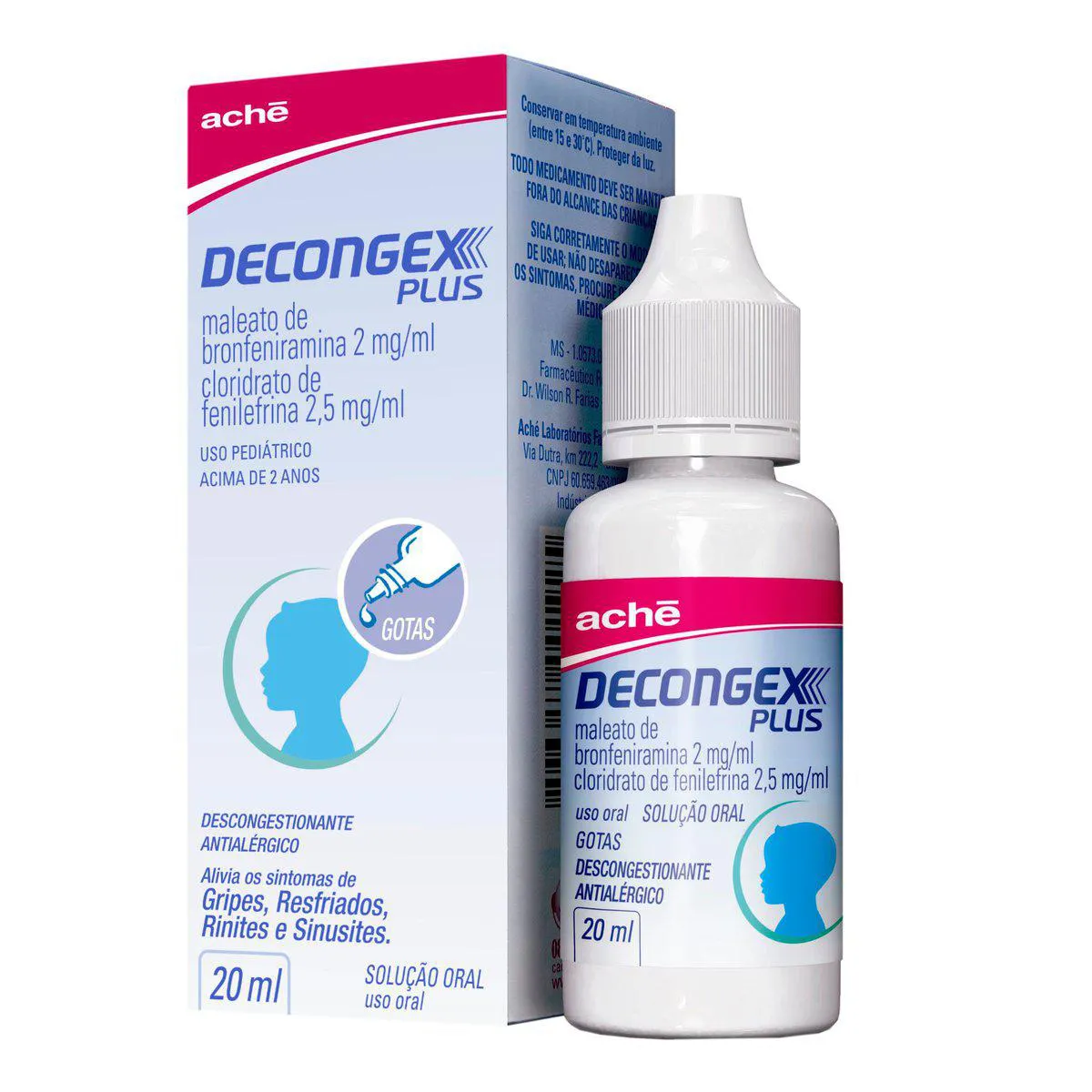 Decongex Plus é um medicamento indicado para crianças acima de 2 anos, cuja formulação é composta por um descongestionante (desentupimento) nasal de efeito rápido e um antialérgico, que controlam e reduzem os sintomas relacionados a gripe, ao resfriado, a rinite e a sinusite (doença que afeta as cavidades existentes ao redor do nariz) (alérgicas ou não), além de diminuir o excesso de secreção (coriza).