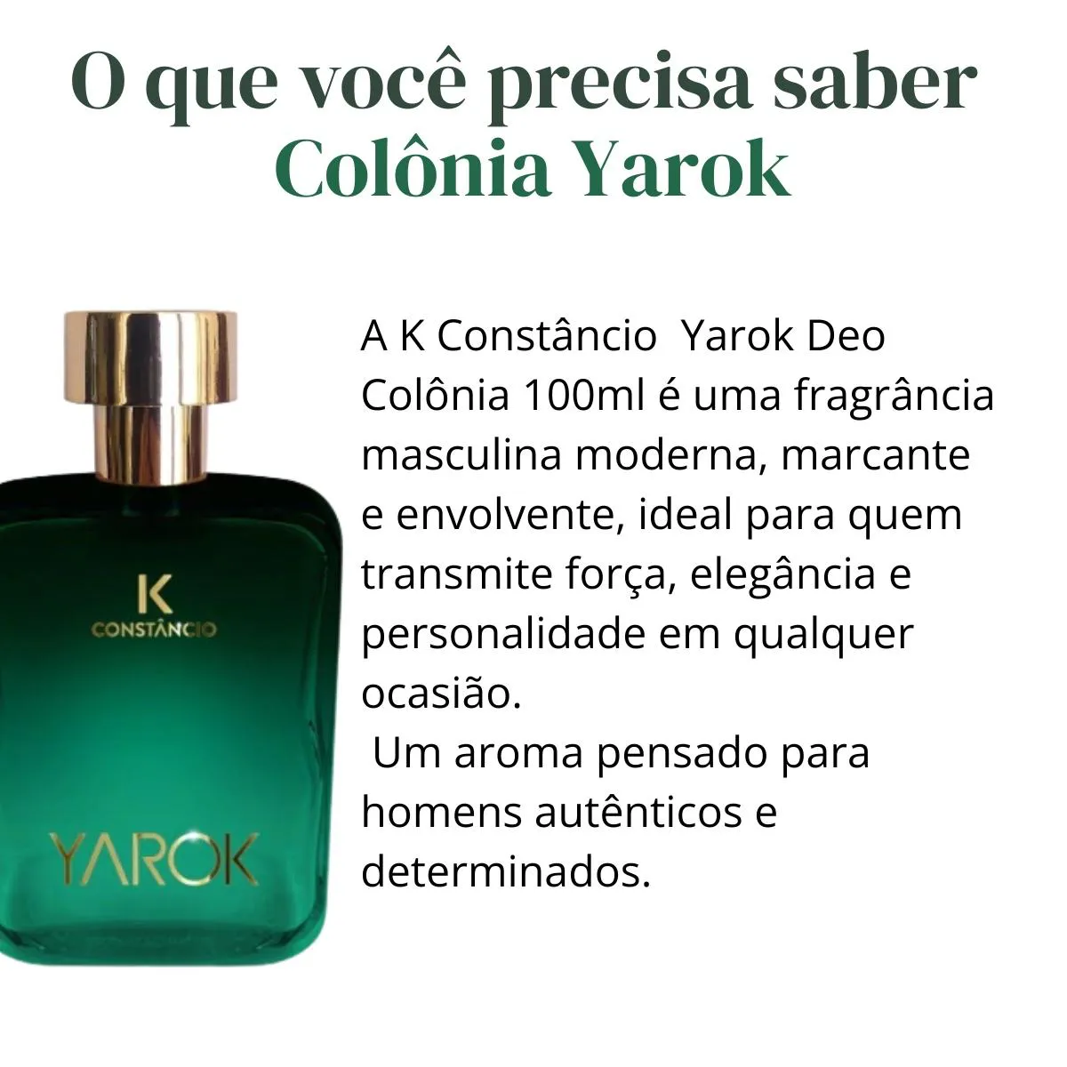 A K Constâncio Yarok Deo Colônia 100ml é uma fragrância masculina moderna, marcante e envolvente, ideal para quem transmite força, elegância e personalidade em qualquer ocasião.
