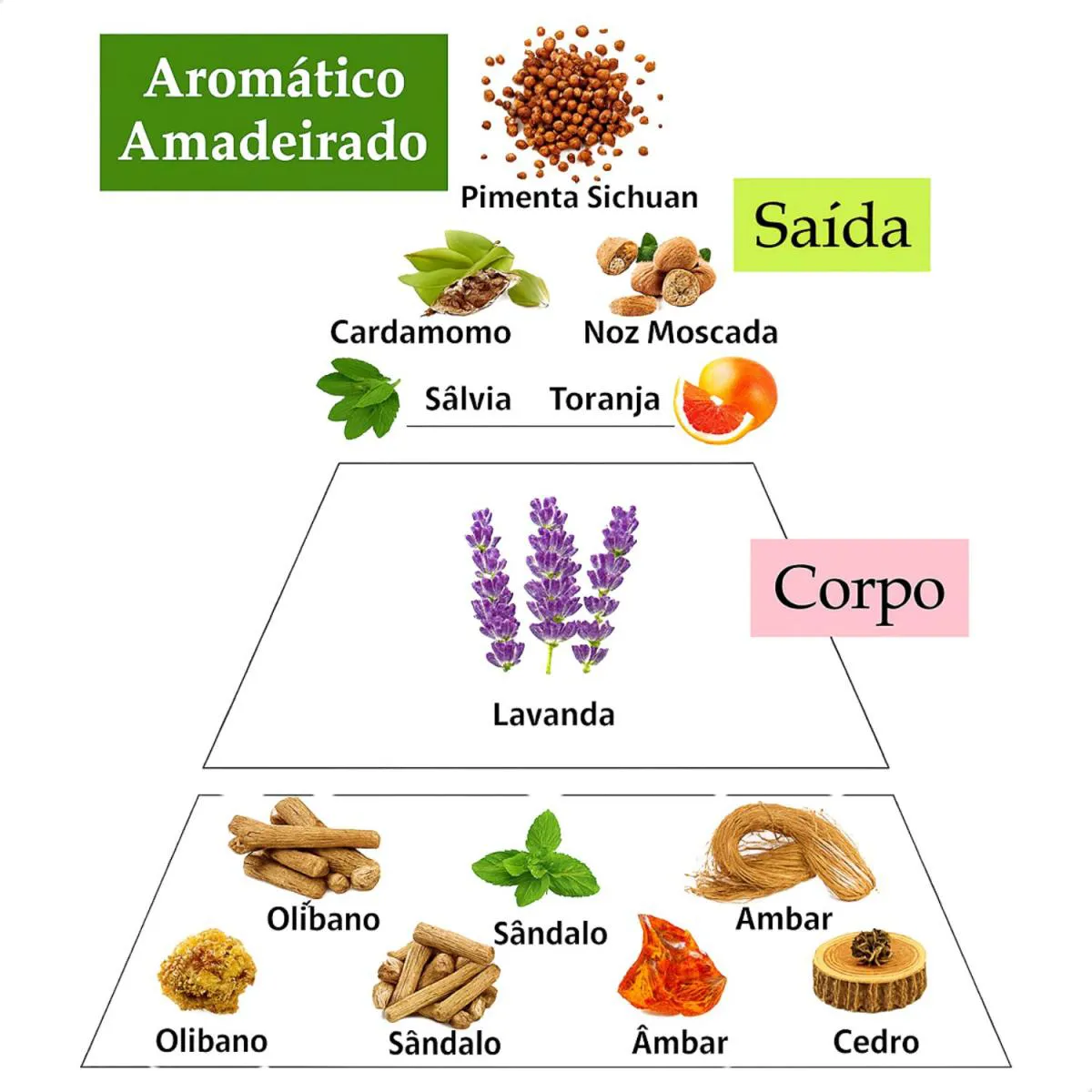 Aroma amadeirado com notas intensas e toque refrescante.