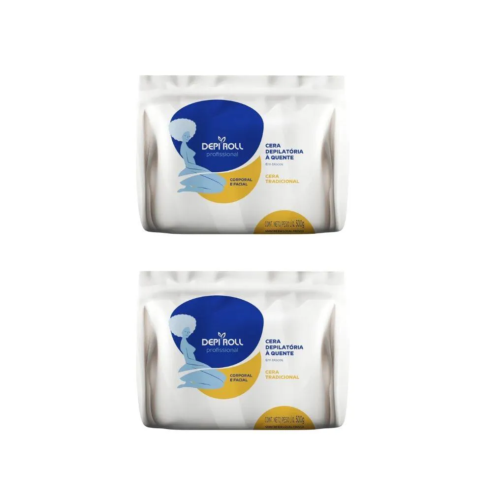 Depilatorio Depiroll Cera 500G Blocos Tradicional-Kit C/ 2Un
