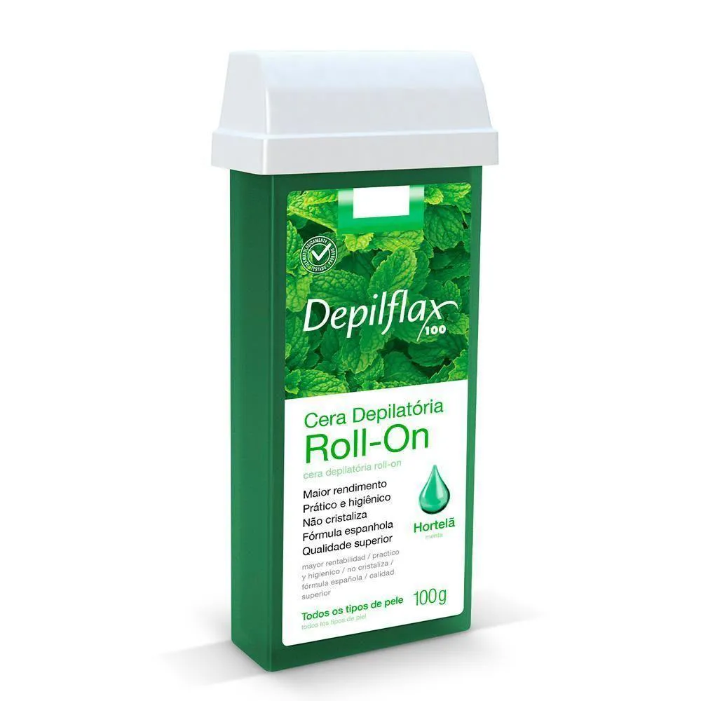 01 - Cera Refil Roll On Hortelã Depilflax - 100g.*Não testado em animais;
