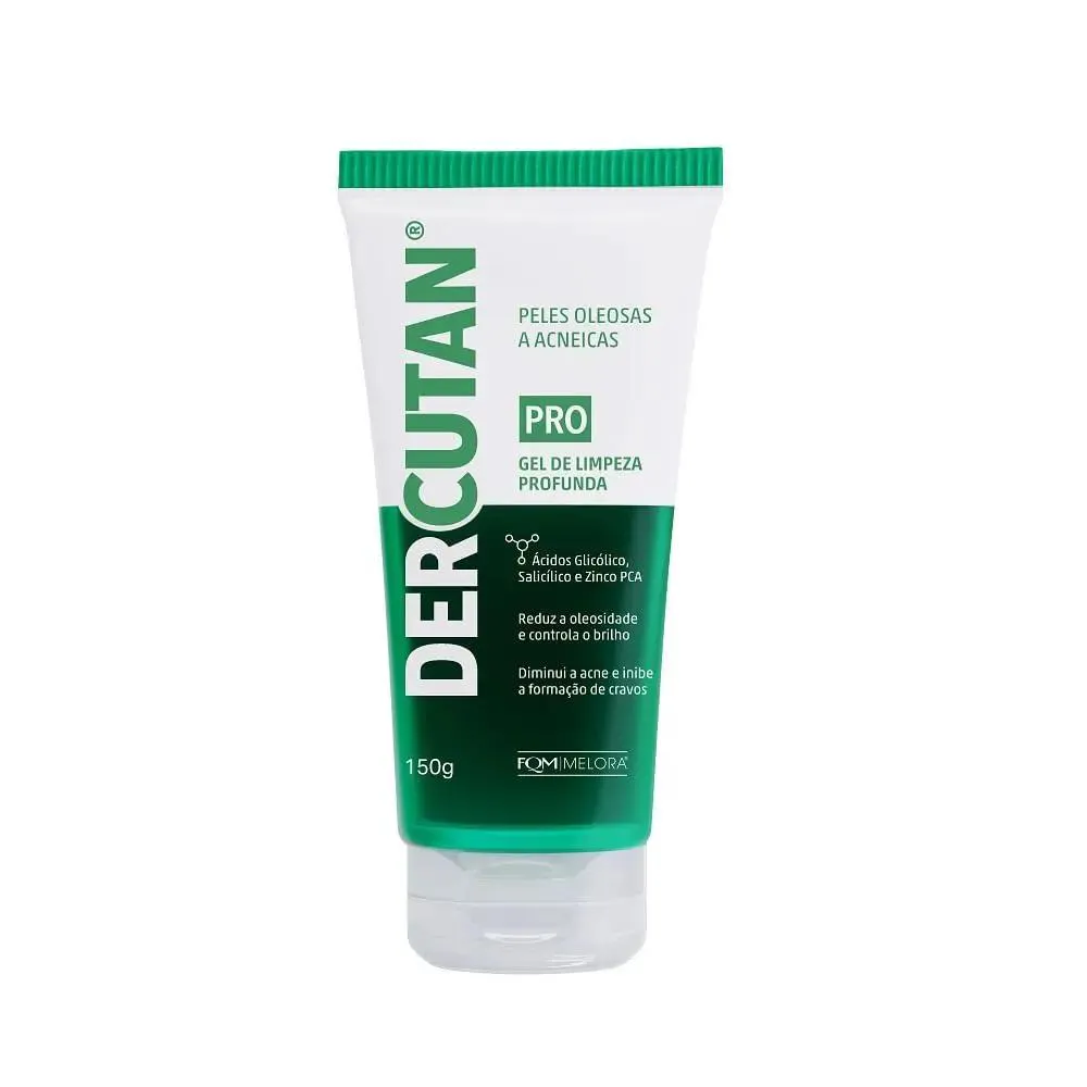 - Dercutan Pro é um gel de limpeza profunda desenvolvido especialmente para peles oleosas e acneicas. Sua fórmula avançada combina Zinco PCA com extratos naturais de Aloe Vera, Hamamélias, Própolis e algas marinhas, que promovem uma limpeza eficaz, desobstruem os poros e ajudam a controlar a oleosidade sem ressecar. Suaviza, purifica e previne o surgimento de acne e cravos, proporcionando uma pele limpa, equilibrada e protegida.