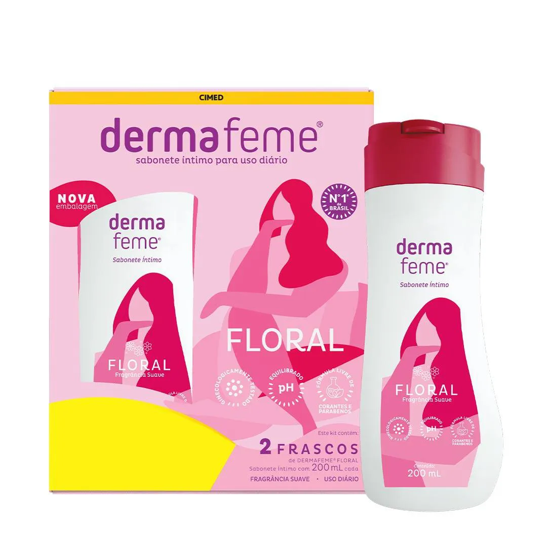 Dermafeme Floral Sabonete Intimo 200Ml Cada Kit 2 - Cimed