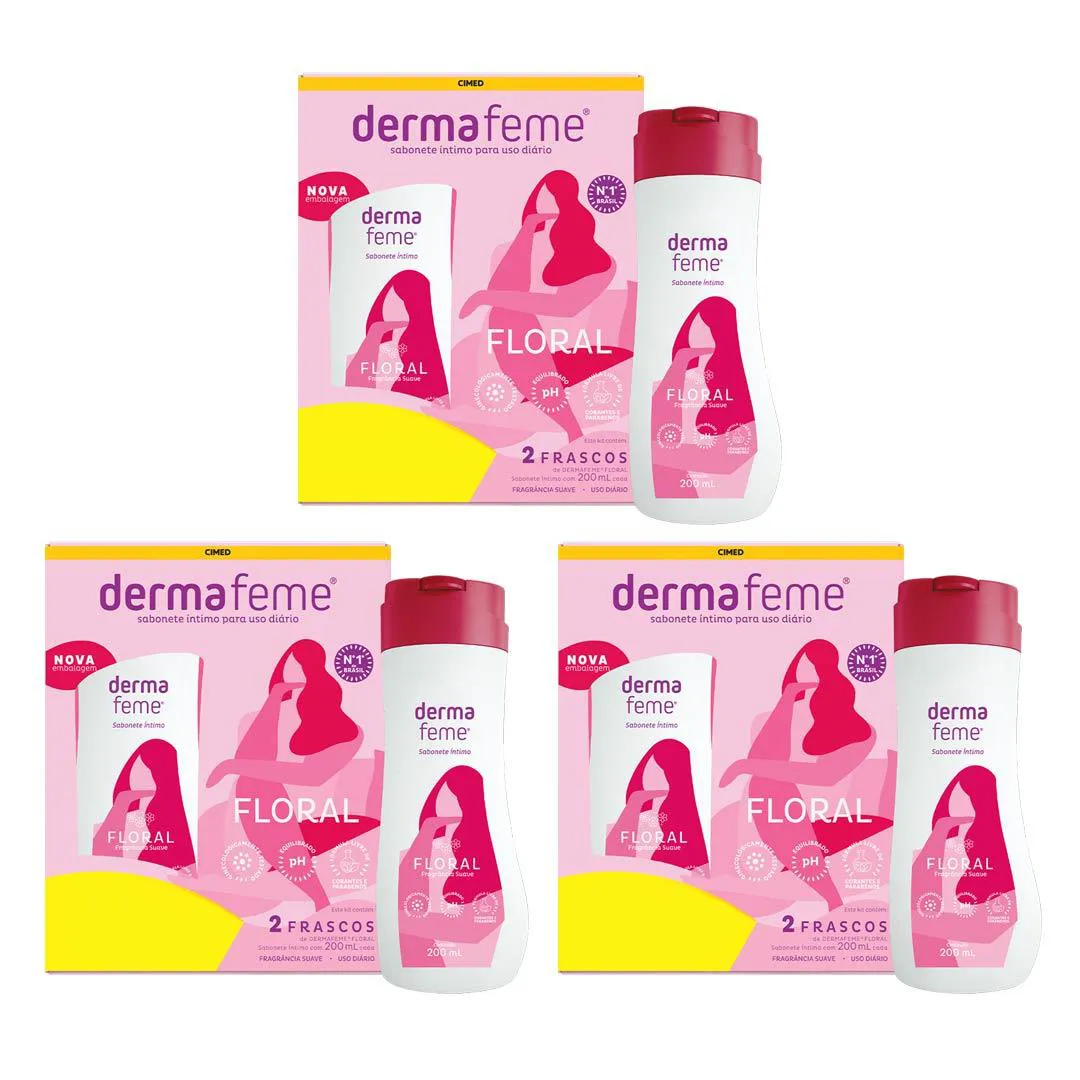 Dermafeme Floral Sabonete Intimo 200Ml Cada Kit 3 - Cimed