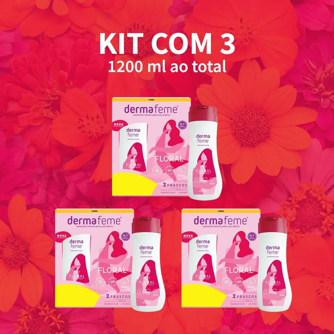 Dermafeme Floral Sabonete Intimo 200Ml Cada Kit 3 - Cimed