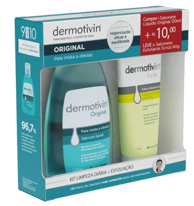 Dermotivin Kit – Sabonete Líquido – Pele Mista a Oleosa 120Ml + Sabonete Esfoliante 60G