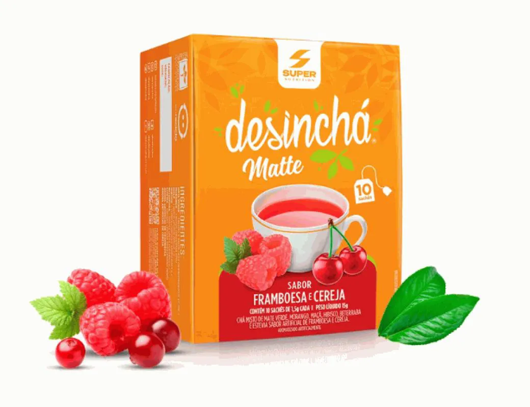 Desinchá Matte (10 Sachês) - Sabor: Framboesa e Cereja