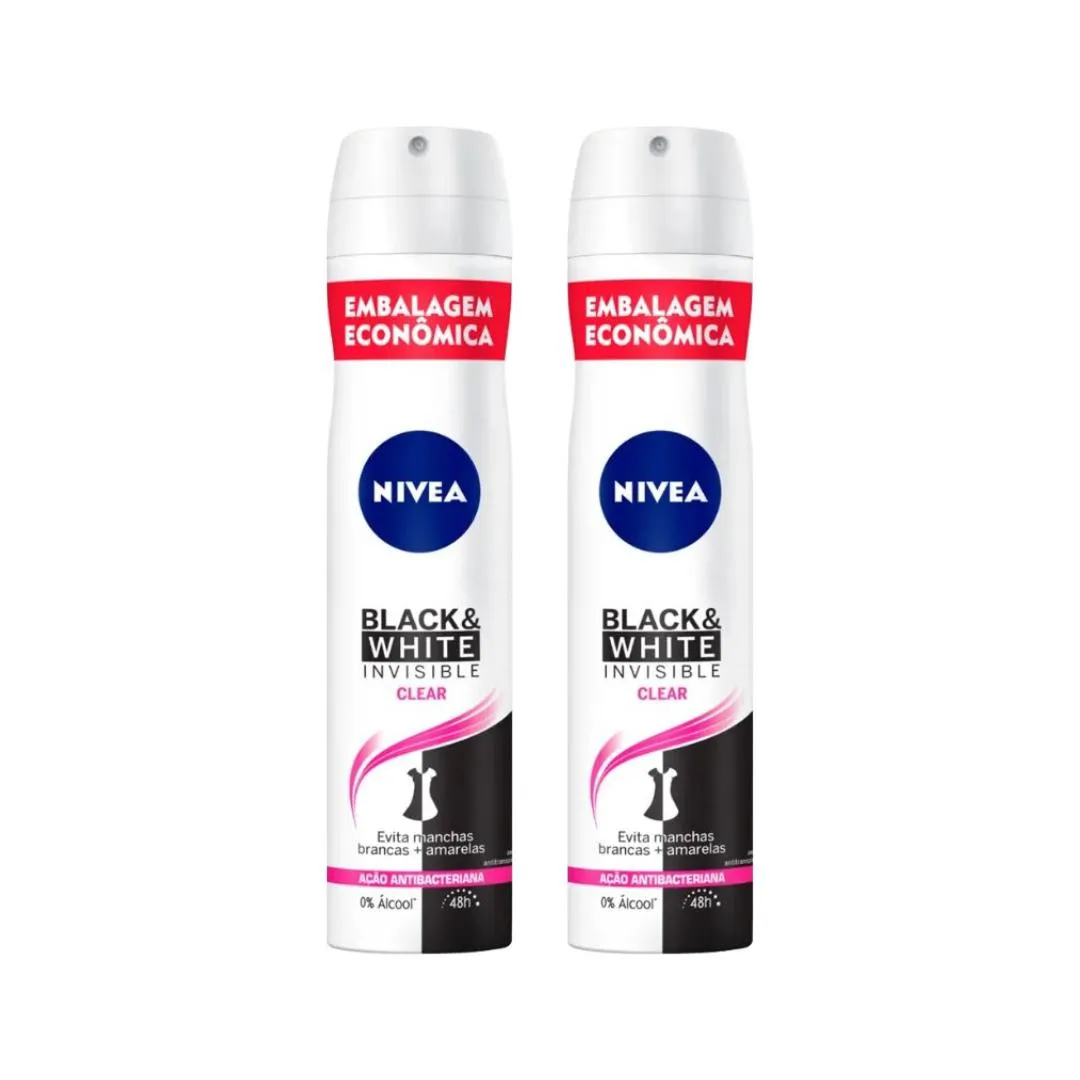 Desodorante Aerossol Nivea Black & White Invisible Clear 200ml - Kit C/2un