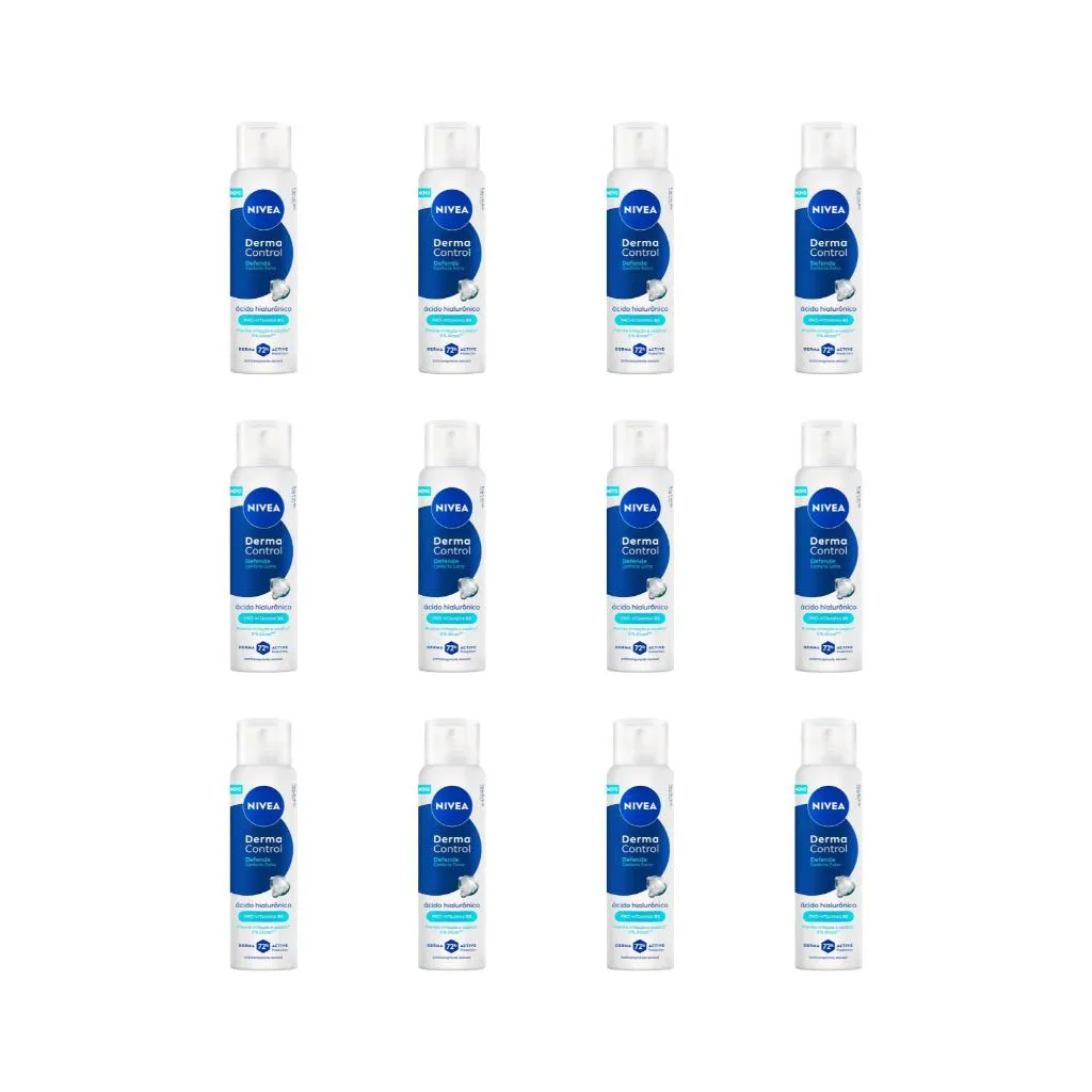 Esse kit contém: 12 Desodorante Aerossol Nivea 150ml Feminino Derma Control Defende. Descrição O Desodorante Aerossol NIVEA Derma Control Defende Feminino 150 ml combina alta performance antitranspirante com cuidado dermatológico. Sua fórmula avançada oferece até 72 horas de proteção eficaz contra suor e mau odor, trazendo segurança e frescor duradouros ao longo do dia. O diferencial está nos seus ativos: Ácido Hialurônico puro e Pró-vitamina B5, que juntos hidratam profundamente e fortalecem a delicada pele das axilas. Essa fórmula sem álcool etílico, dermatologicamente testada, é ideal para peles sensíveis e pós-depiladas, ajudando a prevenir irritações e coceiras com suavidade. Além da performance e do cuidado, o aplicador aerosol oferece toque seco e acabamento leve, perfeito para uso diário e para quem busca proteção confiável sem abrir mão da suavidade. A confiança de uma marca reconhecida aliada a uma experiência agradável e eficaz. Modo de Usar