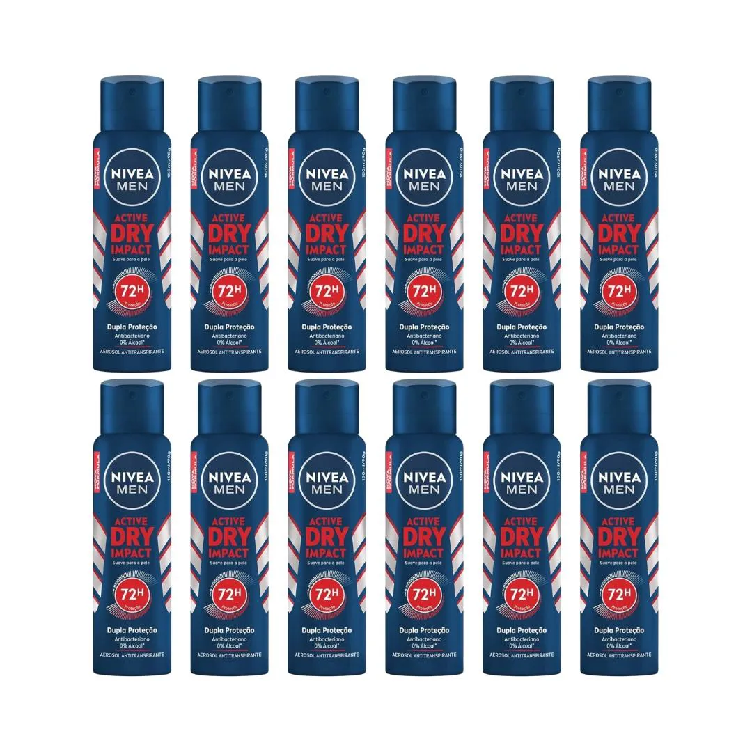 DESODORANTE AERO NIVEA 200ML MEN DRY IMPACT - KIT C/12UN Descrição O Desodorante Aero Nivea 200ml Men Dry Impact é formulado para oferecer uma proteção eficaz contra o suor e odores, garantindo uma sensação de frescor e conforto durante todo o dia. Desenvolvido especialmente para a pele masculina, este desodorante proporciona uma experiência de secagem rápida e uma proteção prolongada, mantendo as axilas secas e sem odores. Sua fórmula avançada é dermatologicamente testada, reduzindo o risco de irritação e assegurando uma aplicação suave e eficaz. A fragrância masculina de Dry Impact é discreta e energizante, ideal para manter a confiança ao longo do dia. Com uma embalagem prática de 200ml, o Desodorante Aero Nivea Men Dry Impact é perfeito para uso diário e para levar na bolsa. Experimente a proteção duradoura e a sensação de frescor que este desodorante oferece, mantendo a pele e suas roupas secas e livres de odores. Ideal para homens que buscam um desodorante confiável que combina eficácia com um toque de refrescância. Modo de Uso