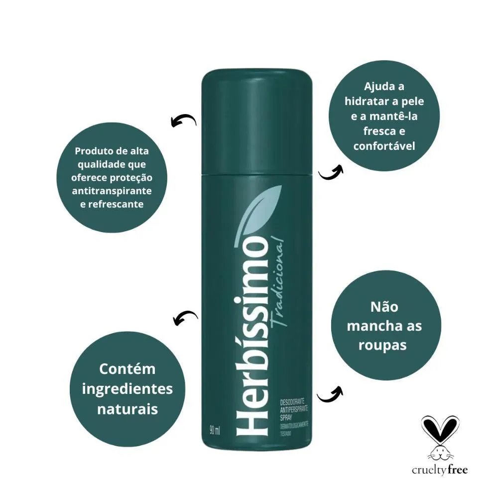 Desodorante Antitranspirante Spray Herbíssimo Tradicional 90ml