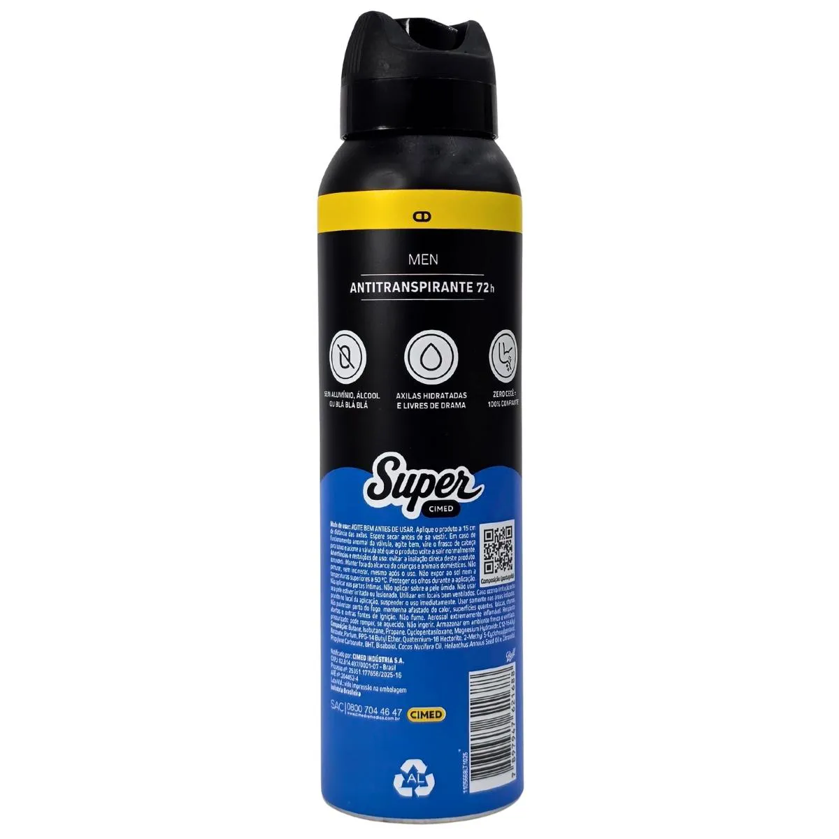Desodorante Antitranspirante Aerossol 0% Alumínio Acqua 72H Super Cimed 150Ml / 87G