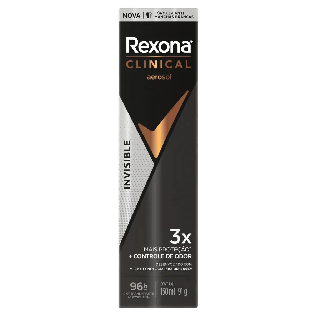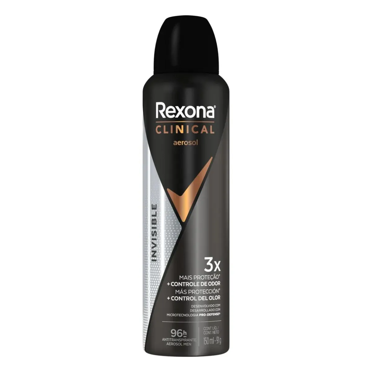 Desodorante Antitranspirante Aerossol Rexona Clinical Invisible Masculino 96H 150Ml