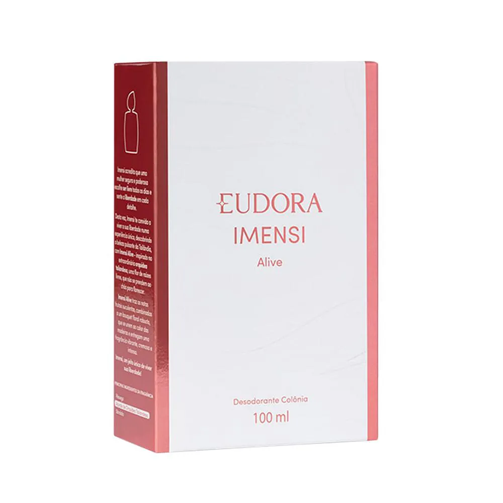 Além de sua composição envolvente, Imensi Alive é um produto vegano e Cruelty Free, ou seja, não é testado em animais, refletindo o compromisso da Eudora com a ética e o respeito ao meio ambiente.