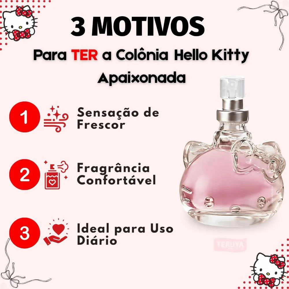 Produto da renomada marca JEQUITI, sinônimo de qualidade.Parte da exclusiva linha Hello Kitty Estilosa, ideal para fãs da personagem.Fragrância cuidadosamente elaborada na família olfativa Frutal Romântica.Desenvolvido especificamente para o público Teen.