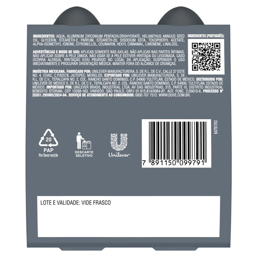 Desodorante Dove Roll-on Men Invisible Dry 50ml - Embalagem com 2 unidades
