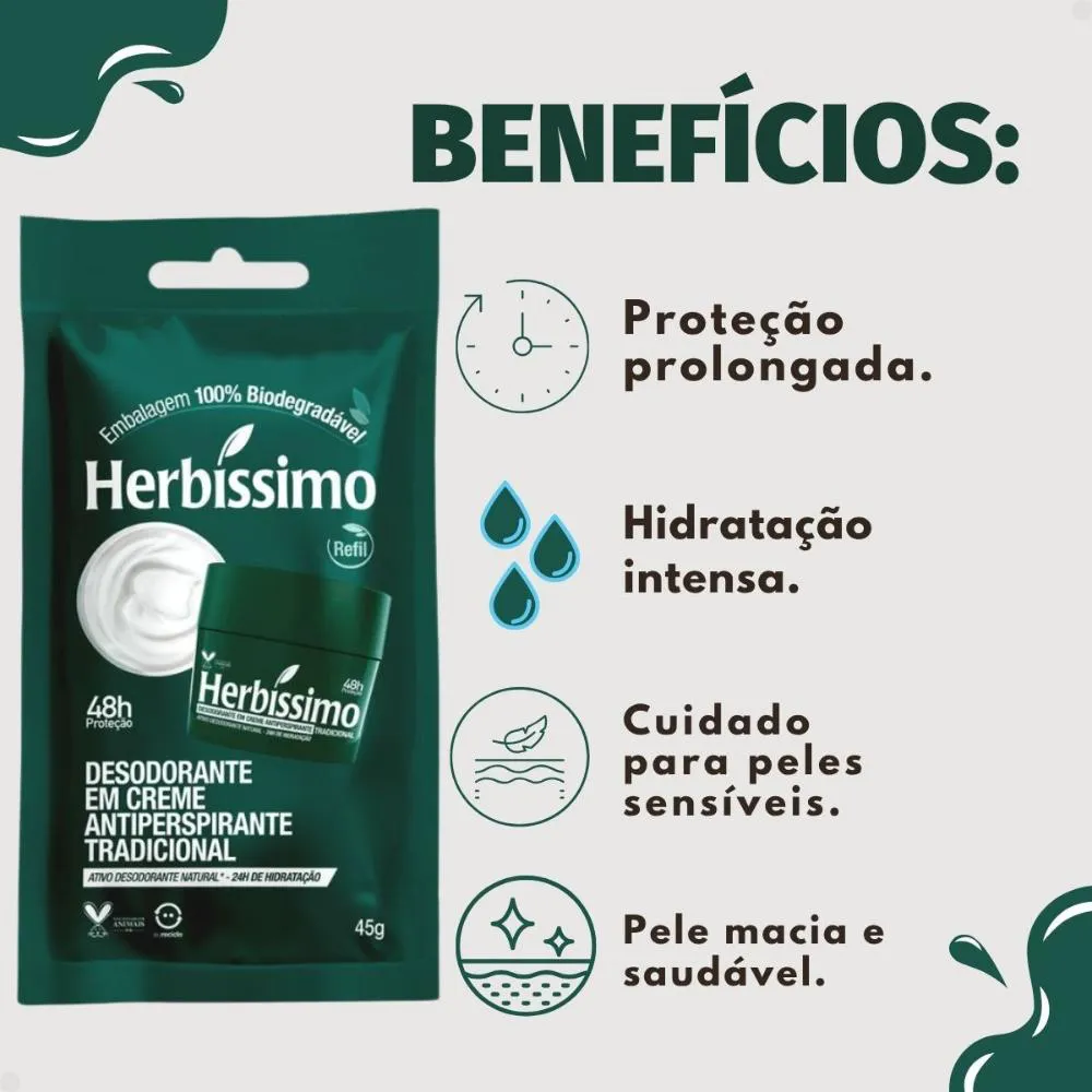 Desodorante Em Creme Refil Herbíssimo Tradicional Antiperspirante 45g