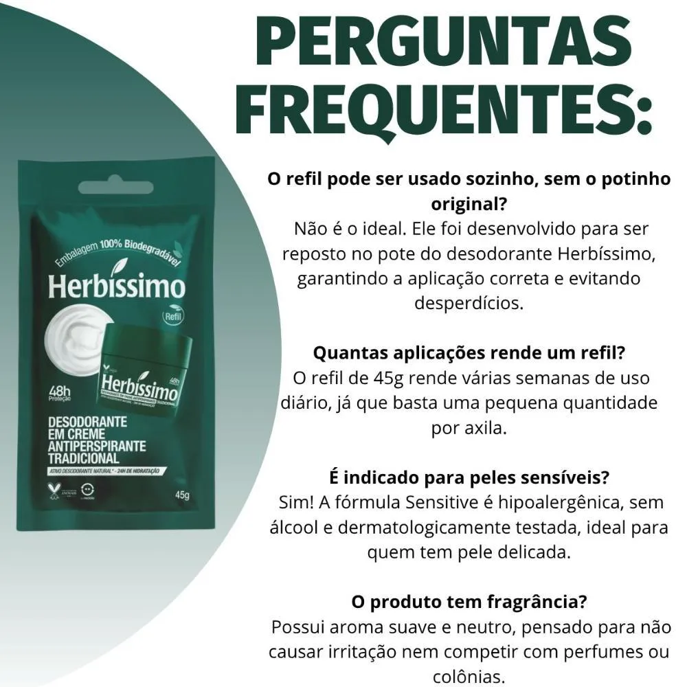 Desodorante em Creme Refil Herbíssimo Tradicional Antiperspirante 45G
