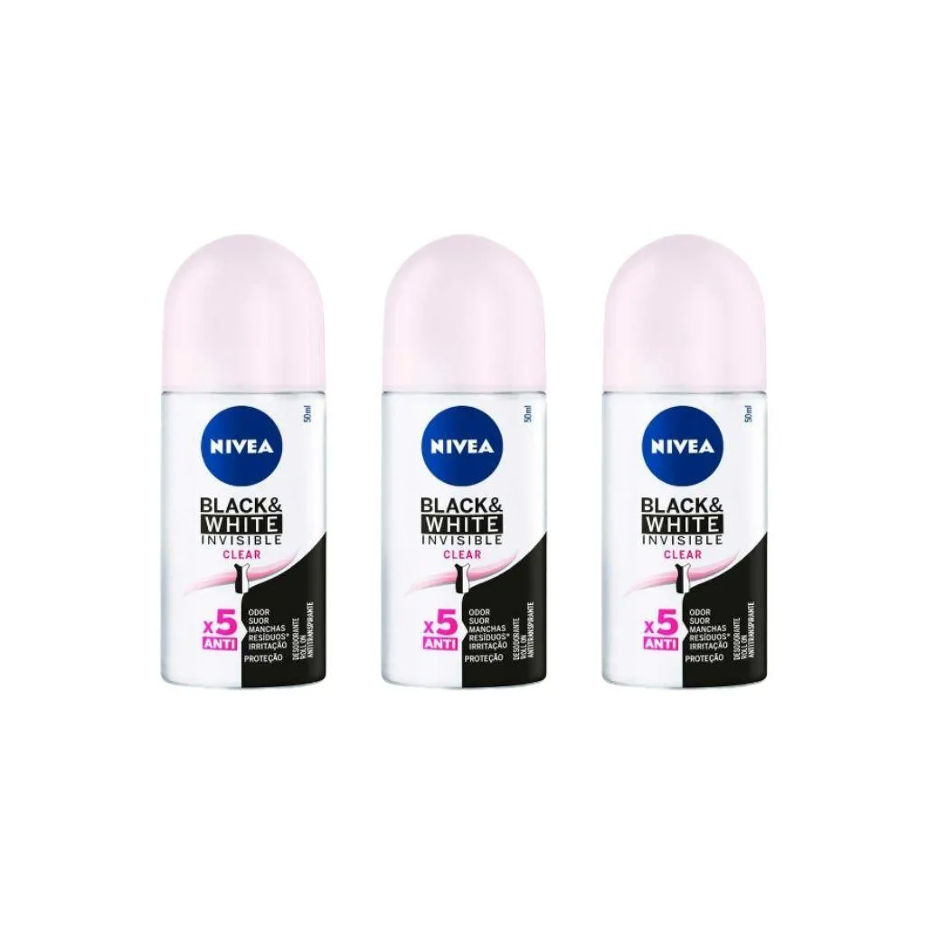 Desodorante Roll-On Nivea 50Ml Fem Invisible Clear - Kit 3Un