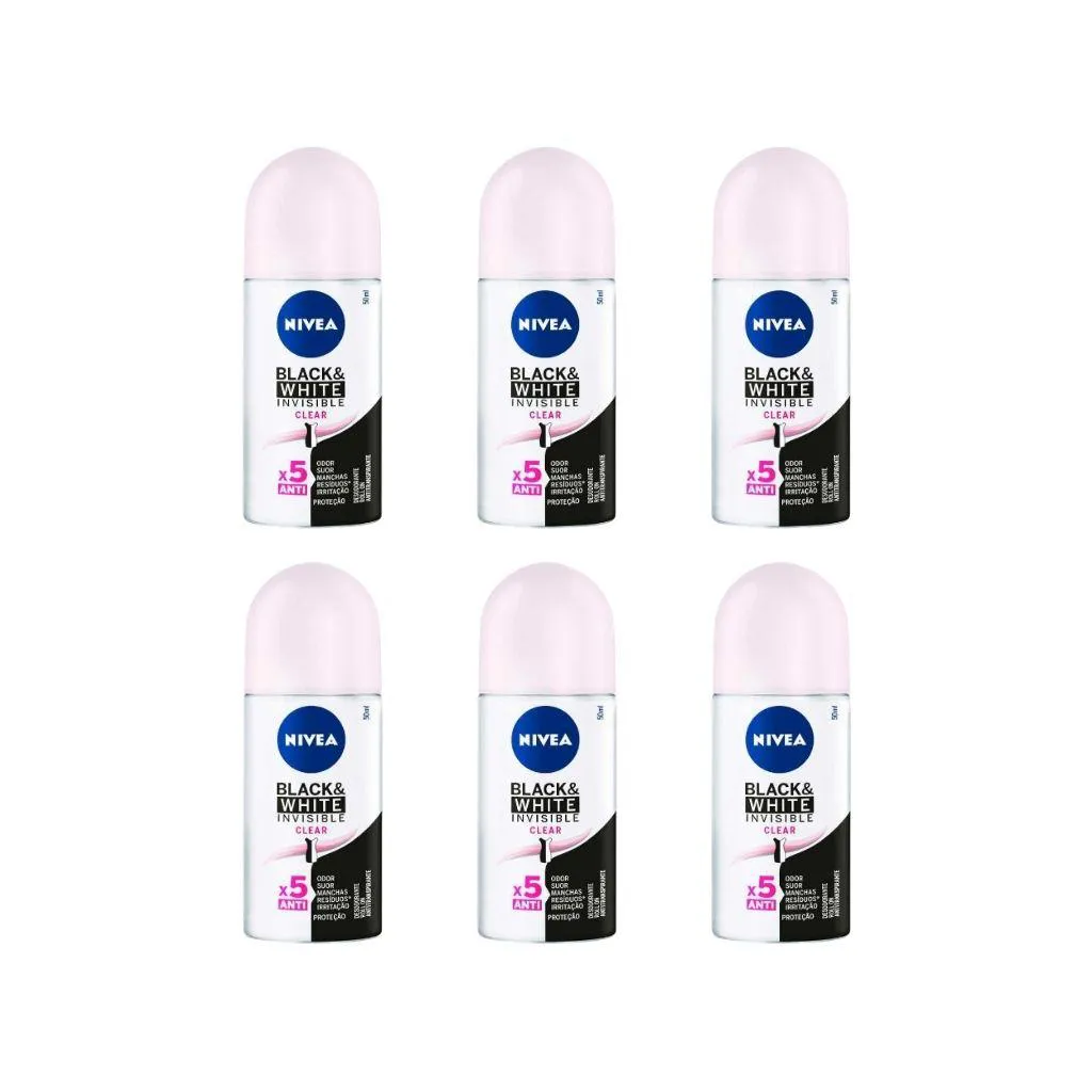 Desodorante Roll-On Nivea 50Ml Fem Invisible Clear - Kit 6Un