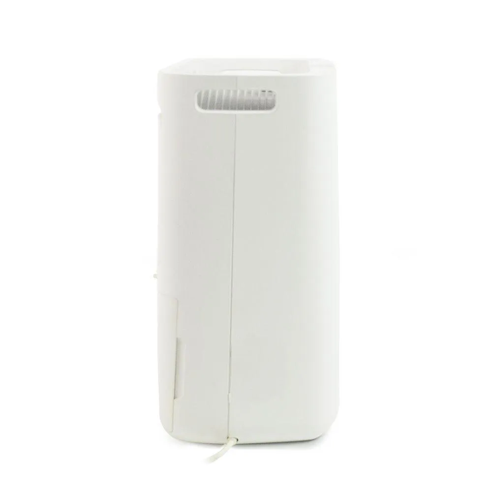 CARACTERÍSTICAS Alça lateral para transporte Função de degelo Desligamento automático quando o tanque de água está cheio Função de BLOQUEIO Desumidificação por compressor Estrutura de plástico ABS Filtro de PVC Gás ecológico Luz indicadora e alarme sonoro para tanque de água cheio Mangueira de drenagem SilenciosoINFORMAÇÕES TÉCNICAS Fonte de alimentação (V): 127V ou 220V Potência do desumidificador: 165W / 154W Dimensões (pol): A 17,52 x L 12,13 x P 8,23 pol Peso bruto: 23,81 libras Peso líquido: 21,61 libras Desumidificação (pints/dia): 21,13 pints/D a 86°F 80% RH Capacidade do tanque de água: 0,61 galões Conector de drenagem (mangueira): Sim Composição: Plástico ABS Cor: Branco Corrente: 1,3A / 0,7A Tipo de motor: Compressor hermético alternativo Capacidade do compressor: 1/6HP - 1350 Btu\'s Gás refrigerante do compressor: R134A Temperatura ideal de trabalho: 62,6°F a 95°F Degelo: Sim Ionizador: Não Humidostato: Sim Nível de ruído: 39 dB Taxa de fluxo de ar/hora: 95 m³/h Filtro: PVC Rodízios: Não Portátil: Sim Garantia: 1 ano Acessórios: Manual de instruções e mangueira de drenagem Mais informações: Limpe o filtro uma vez por semana Recomendações: Mantenha o desumidificador pelo menos 30 centímetros longe da parede Consulte nosso regulamento Prevenção e Combate aos focos de umidadeSide handle for transportation Defrost function --> Melhoria da Qualidade de ArSide handle for transportation Defrost function --> Aceleração de Secagem Consulte nosso regulamento
