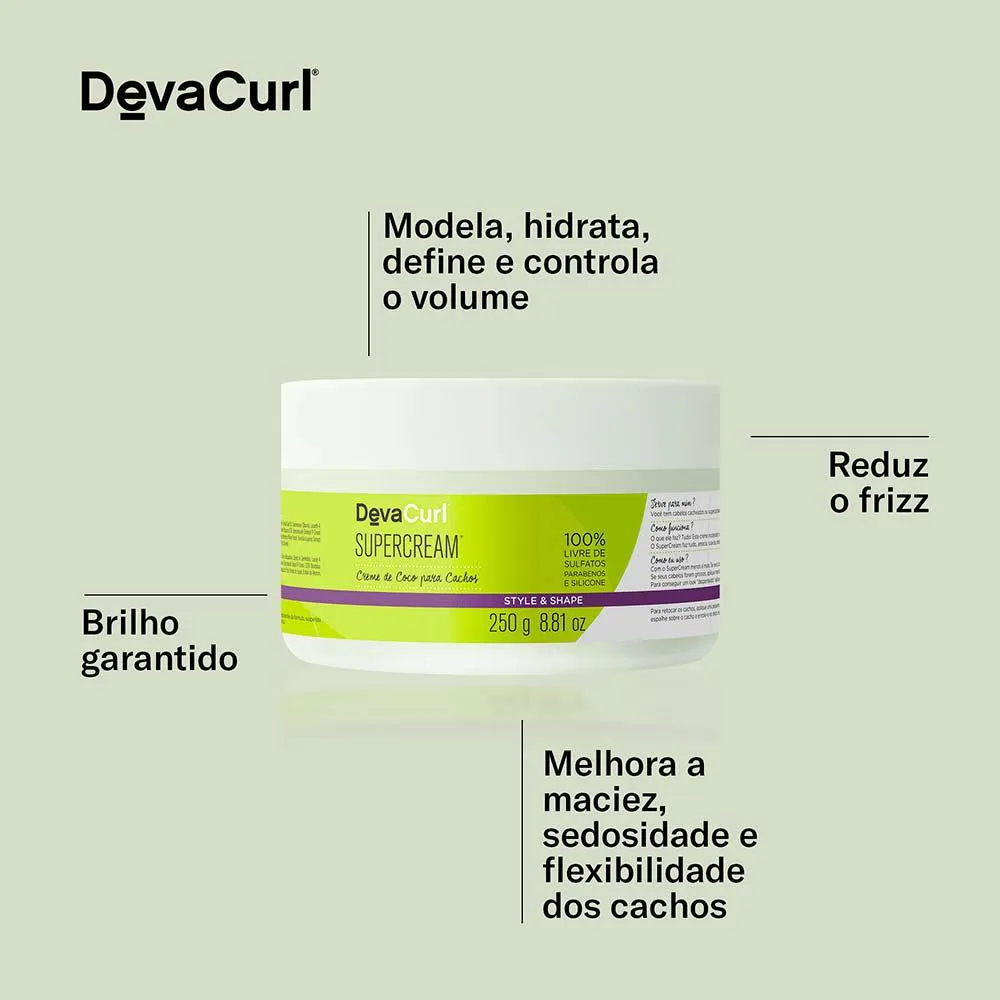 SuperCream Creme de Coco para Cachos de Deva Curl é um creme modelador supernutritivo com infusão de óleo de coco, que oferece para você toda a liberdade de se expressar com seus cachos.