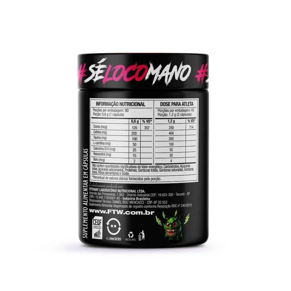 Diabo Verde Thermo Crazy (90 caps) Diabo Verde Thermo Crazy contém um blend de ingredientes que ajudam a acelerar o metabolismo e promover a queima de gordura corporal. Esses ingredientes têm propriedades termogênicas, ou seja, podem aumentar a temperatura do corpo e acelerar o metabolismo, o que ajuda queimar mais calorias e favorecer a perda de peso. Além disso, Diabo Verde Thermo Crazy também pode ajudar a aumentar a energia e a disposição para treinos físicos, reduzir a fadiga e melhorar a concentração mental. Chegou a hora de turbinar o shape com o termogênico da FTW, em uma collab explosiva com o Pobre Loco! ATIVE SEU MODO CRAZY! Benefícios: ** Acelera o metabolismo aumentando o gasto calórico;** Auxilia na queima de gordura;** Melhora a capacidade de resistência;** Melhora concentração;** Auxilia na definição muscular.
