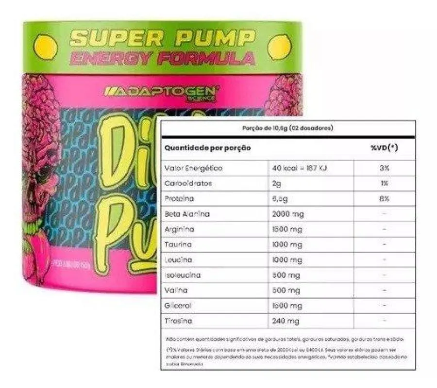 Dila Pump Adaptogen Limonada 150g – Aumente sua Performance e Energia no Treino!Dila Pump Adaptogen é um suplemento de pré-treino inovador, formulado para fornecer energia, foco e potencializar sua performance durante os treinos. Com uma fórmula única, ele combina arginina, beta-alanina, bcaa’s, taurina, e outros aminoácidos essenciais que garantem o máximo de desempenho, sem adição de estimulantes como cafeína.Diferenciais: