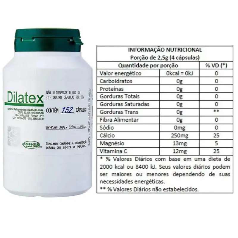 DILATEX permite que você sinta os efeitos do aumento da força, Pump e vasodilatação durante o primeiro treino. Dilatex é um suplemento pré-treino com fórmula exclusiva composta por Alanina e Arginina de mineral quelato . A estabilidade desses complexos de quelatos é aprimorada em nosso laboratório por meio de uma tecnologia chamada OxyPump®, que garante o equilíbrio dos complexos de quelatos. A vantagem deste complexo é a melhor biodisponibilidade (até 90% de absorção x 10 a 20% de minerais inorgânicos), não interfere na absorção de outros nutrientes, não causa efeitos colaterais.Beneficios:
