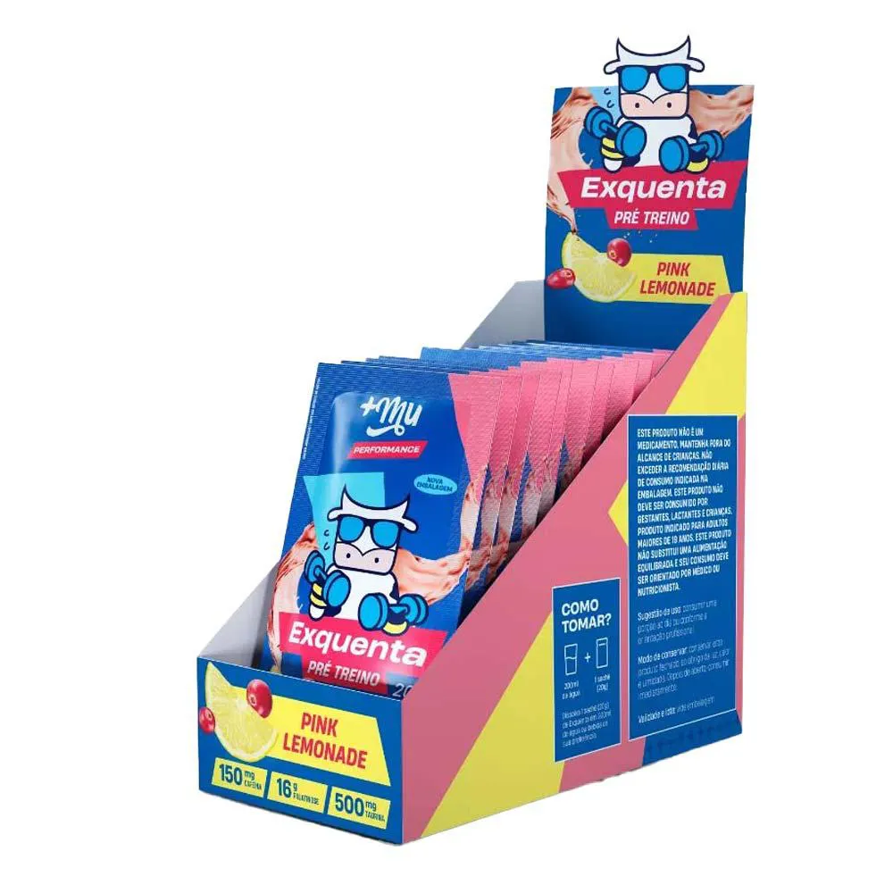 Display Pré Treino em Sachê Exquenta Mais Mu Performance Pink Lemonade 15 Sachês