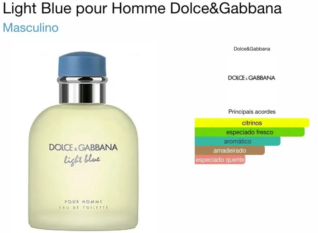 perfume masculino amadeirado aromático. Light Blue, de Dolce & Gabbana, evoca a aventura e o dinamismo do homem contemporâneo.