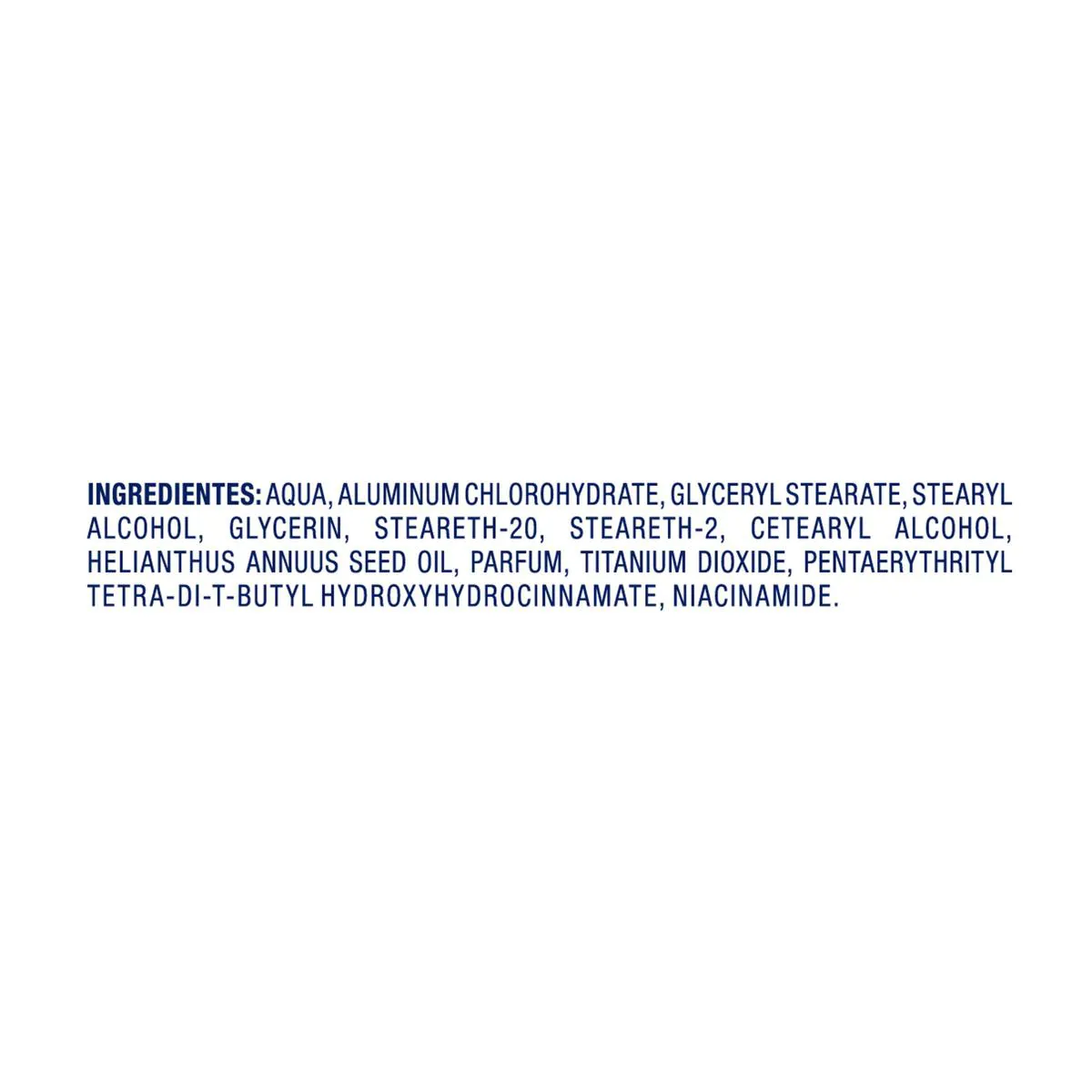 Água, Cloroidróxido de Alumínio, Monoestearato de Glicerila, Álcool Estearílico, Glicerol, Éter de Macrogol Monoestearílico, Éter de Macrogol Monoestearílico, Óleo de Girassol***, Álcool Cetoestearílico, Perfume, Dióxido De Titânio, Tetra-Di-T-Butil Hidróxi-Hidrocinamato de Pentaeritritila, Nicotinamida.
