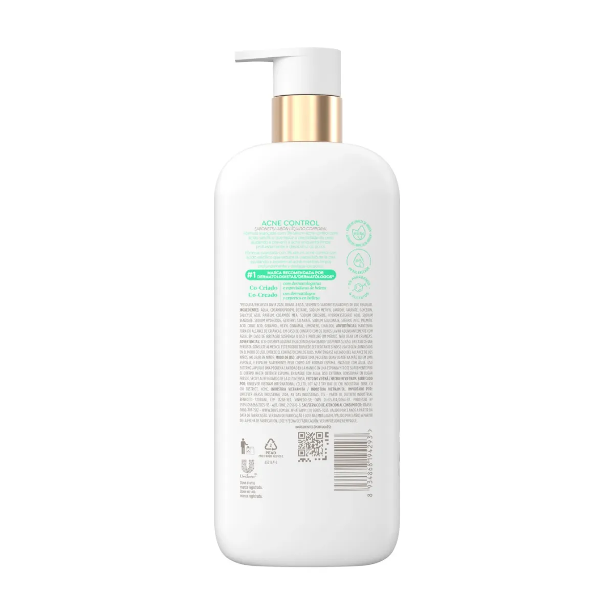O Sabonete Líquido Dove Acne Control é um sabonete líquido corporal desenvolvido para auxiliar no controle da acne e dos cravos durante o banho. Sua fórmula não comedogênica combina agentes de limpeza suaves com ingredientes de skincare, ajudando a limpar a pele de forma eficaz sem obstruir os poros.