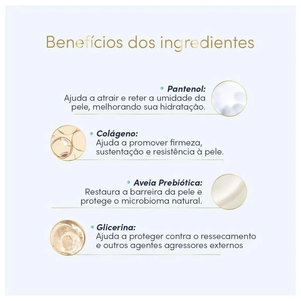 Contém pantenol, glicerina e ativos dermo reparadores que auxiliam na retenção de água e na reparação da barreira cutânea. Modo de Uso: