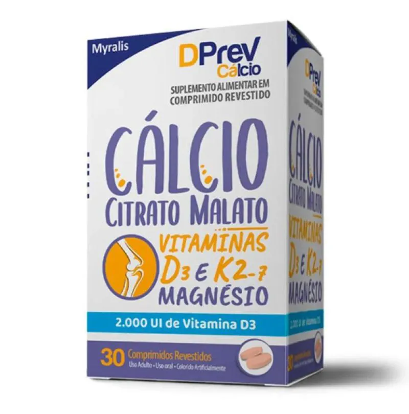 Dprev Cálcio é um suplemento alimentar em comprimidos, à base de Cálcio Citrato Malato e outras vitaminas e minerais, como o Cálcio, o Magnésio, a vitamina K2 e a vitamina d, que agem auxiliando na formação e manutenção de ossos e dentes.