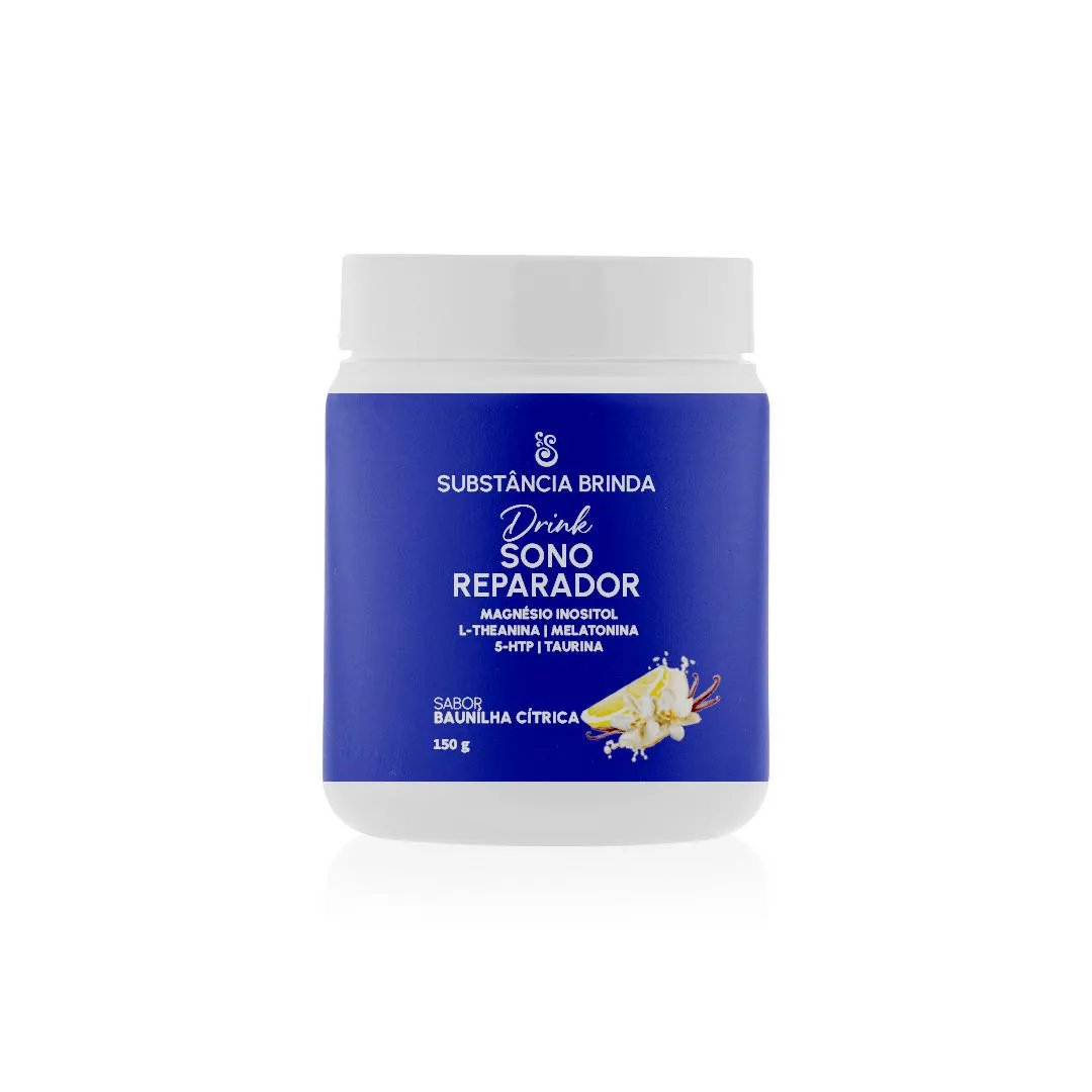 O Drink Sono Reparador é um suplemento nutricional formulado com uma combinação de magnésio, inositol, L-Theanina, melatonina, 5-HTP e taurina, com sabor natural de baunilha com limão siciliano. Seu objetivo principal é auxiliar no relaxamento profundo e melhorar a qualidade do sono, contribuindo para reduzir a agitação mental, facilitar o adormecer e promover um sono mais contínuo e restaurador.