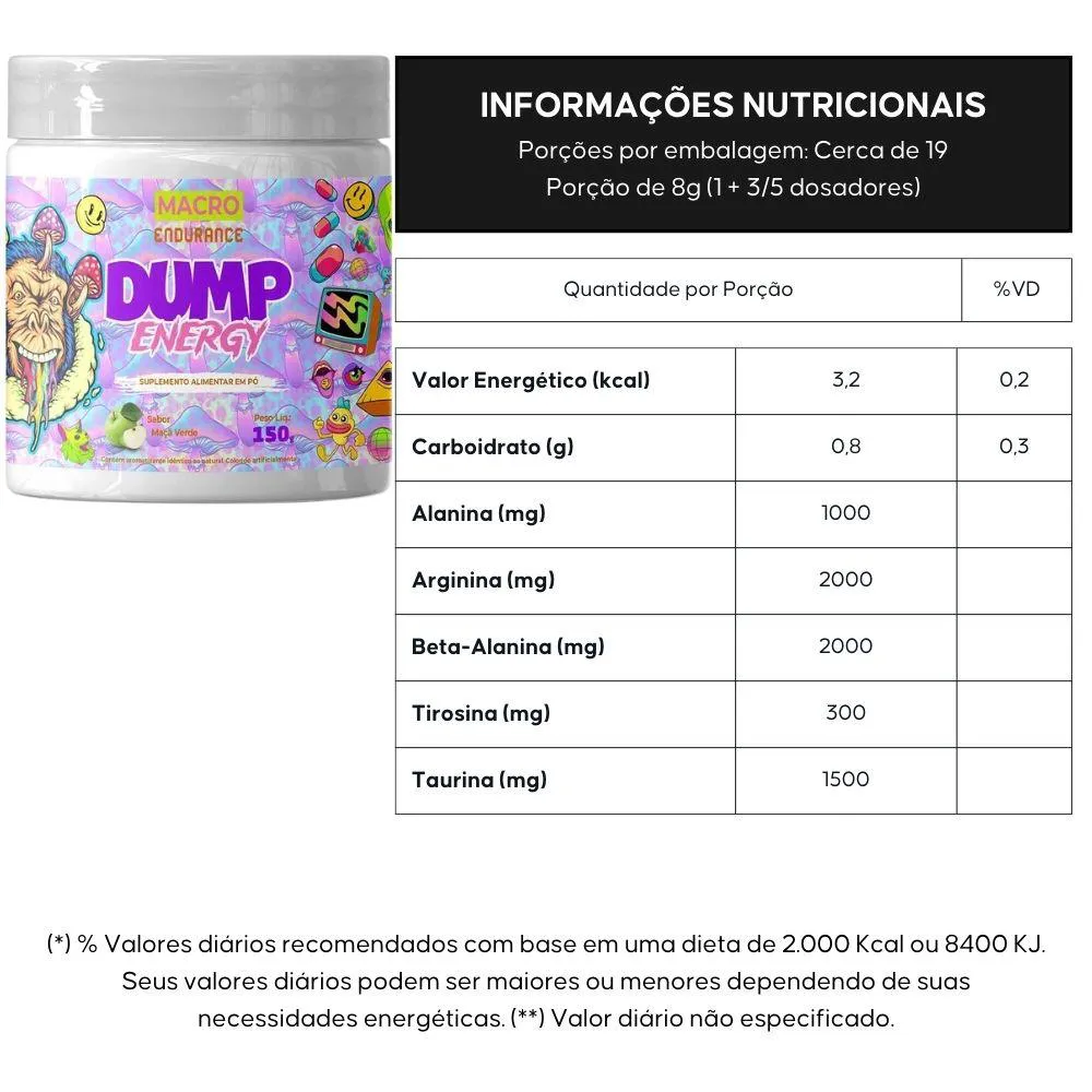 Dump Energy Pré Treino sem Cafeína 150G - Macrophytus Maça Verde