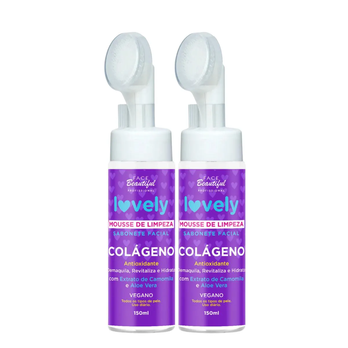 2 sabonetes Faciais Mousse de Limpeza Profunda com Colágeno Lovely 150mL - Face Beautiful
