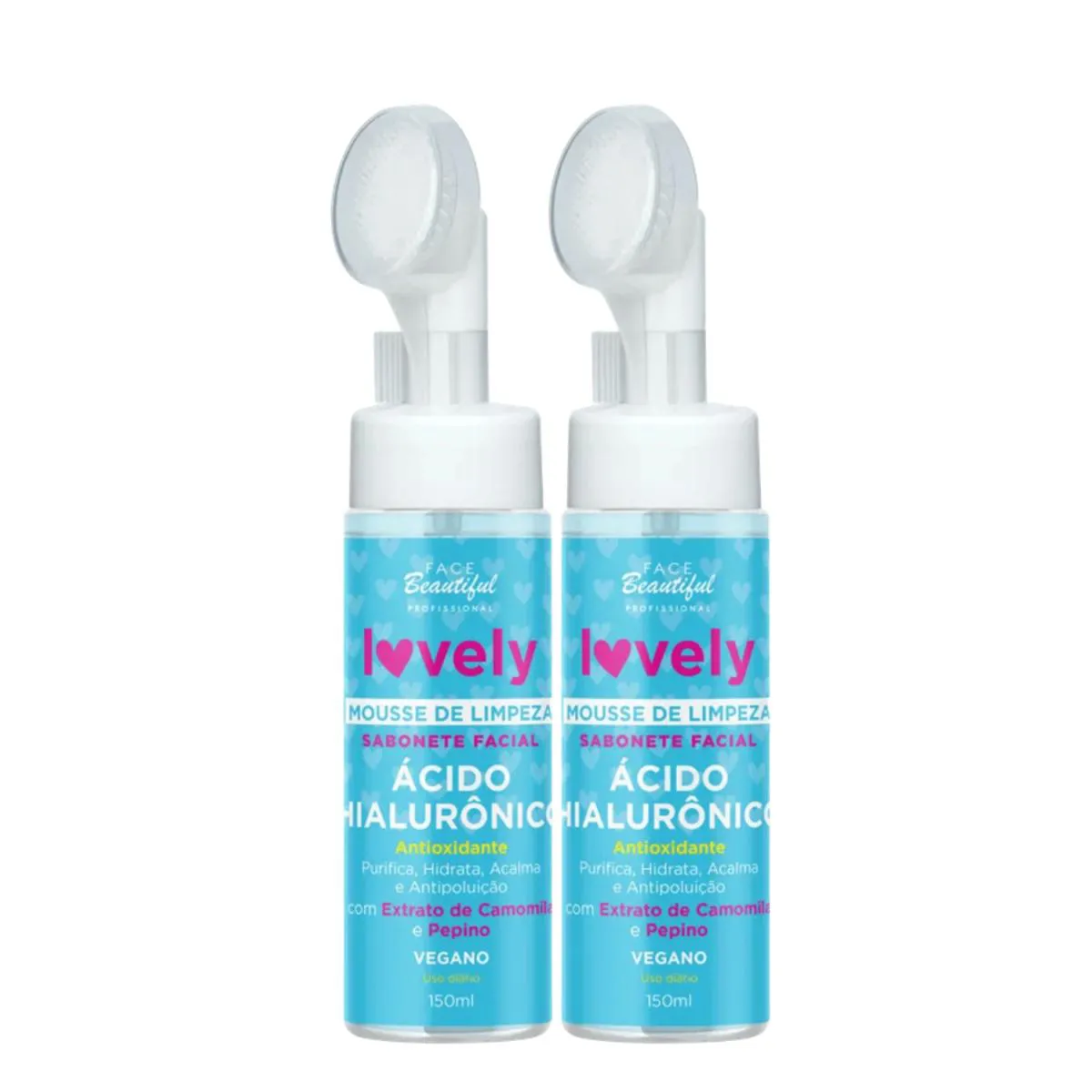 O que você recebe? 2 sabonetes Faciais Mousse de Limpeza Ácido Hialurônico Lovely 150mL - Face Beautyfull