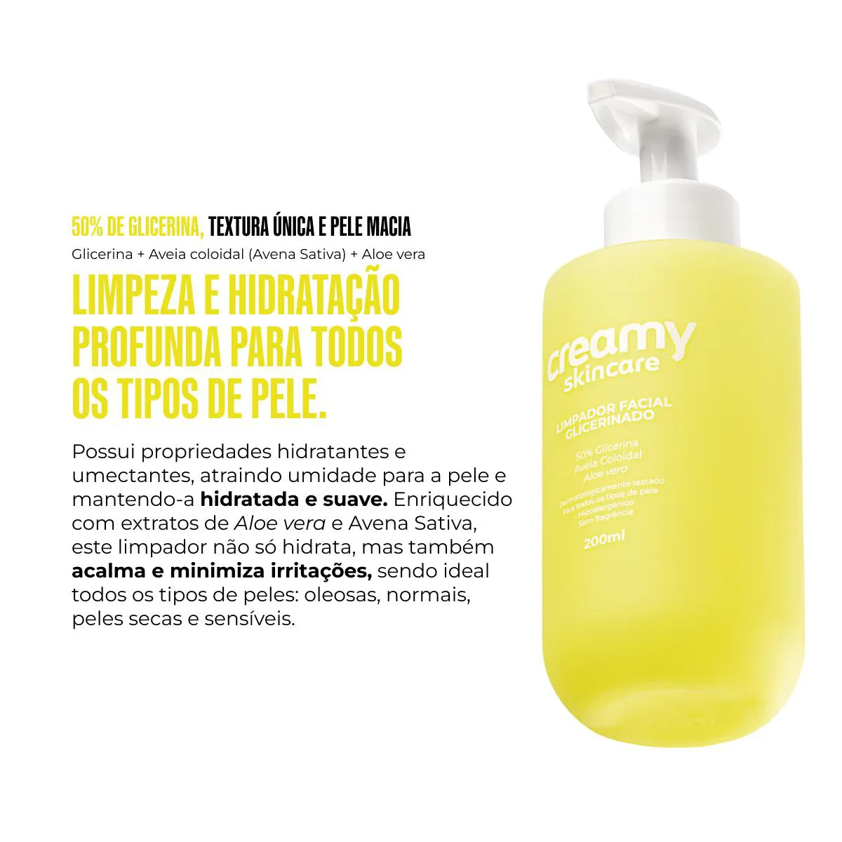 - Limpador com 50% de glicerina e extratos naturais.