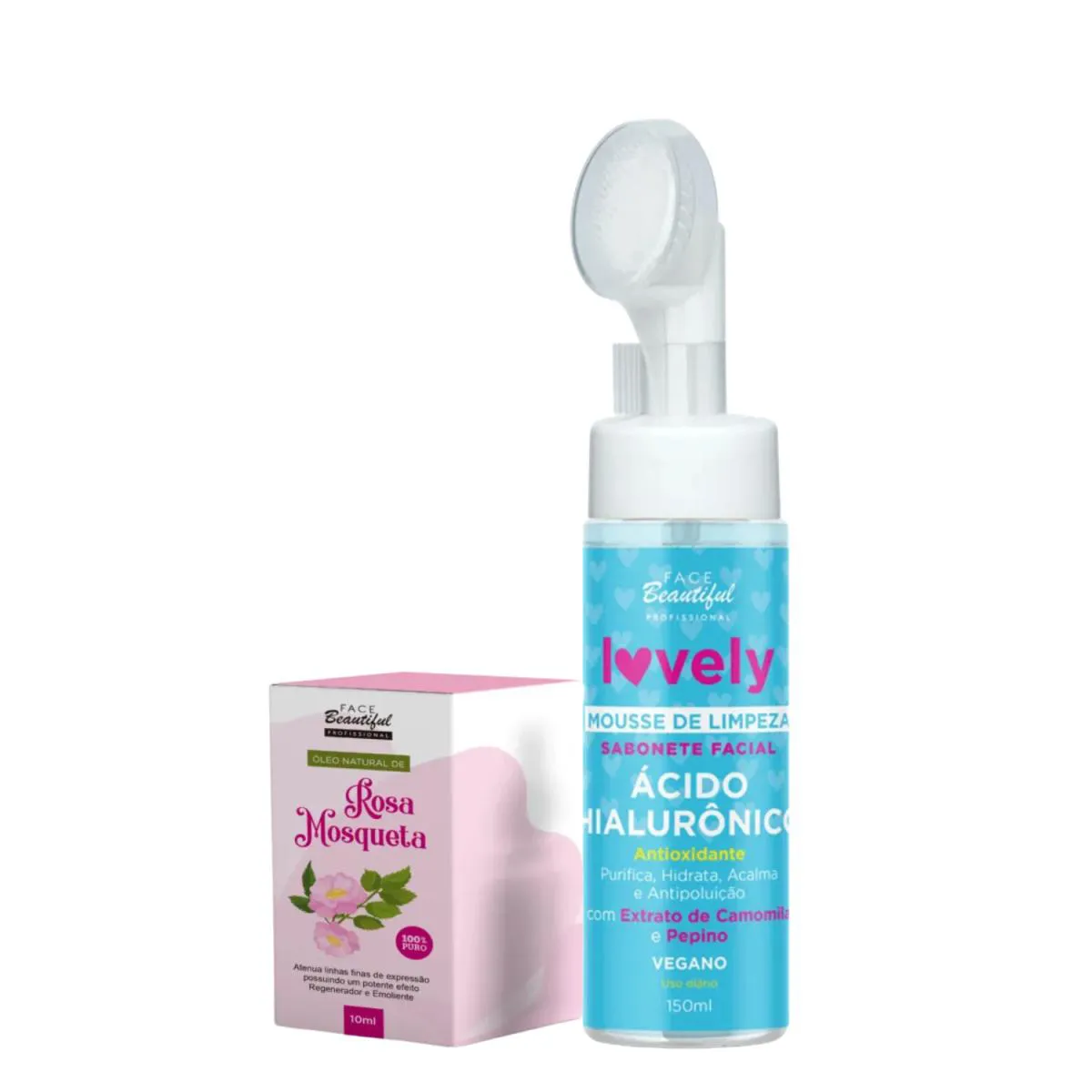 Duo Óleo de Rosa Mosqueta e Sabonete Facial Lovely Ácido Hialurônico 150Ml - Face Beautiful | Skincare Natural