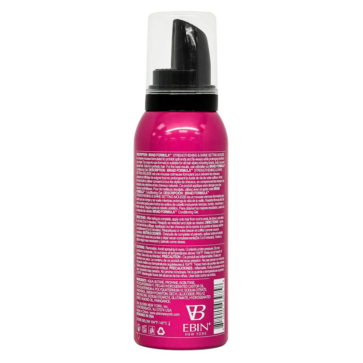 Mousse Fixação Ebin Fortalecedor e Brilho 80ml Óleo de Amêndoa Doce 1. O toque final para suas tranças! Nosso Mousse de Fixação ajuda a fixar seu estilo eliminando qualquer frizz e estendendo a vida útil do estilo. O mousse de fixação é formulado para manter o brilho e a maciez sem acúmulo pesado ou resíduos escamosos. 2. Após terminar de modelar, aplique no cabelo da raiz às pontas e deixe secar completamente (3 a 5 minutos). Reaplique conforme necessário e modele como desejar. Manter suas tranças frescas e polidas nunca é um problema com nosso mousse de fixação leve que não pesa sua trança. 3. Cada um formulado com metanol, azeite de oliva ou amêndoa doce para tratar suas tranças corretamente. Todos são ingredientes benéficos para o seu cabelo para garantir que ele esteja com uma ótima aparência enquanto você se sente bem. 4. Mousse de fixação leve que proporciona acabamento suave e aparência sem frizz. O mousse de secagem ao ar que prende suas tranças e controla o frizz e os fios rebeldes. Finalize suas tranças sem quebra e irritação para estilos perfeitos, elegantes e pontuais. Chega de fios rebeldes estressantes. 5. Mantenha suas tranças no lugar junto com hidratação e nutrição para deixar seu cabelo mais forte e saudável, com um brilho impecável e saudável. Deixe seu cabelo brilhar apenas com os melhores ingredientes. Validade longa