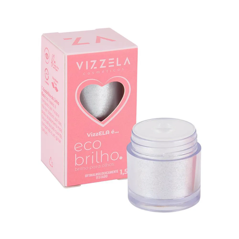 O Ecobrilho da Linha Ela, da Vizzela, é feito com micas, oferecendo um acabamento mais fino e sofisticado em comparação com glitters tradicionais, que contêm plástico. Com brilho intenso e de alta qualidade, proporciona um efeito radiante e sofisticado para a maquiagem dos olhos. Modo de Uso: