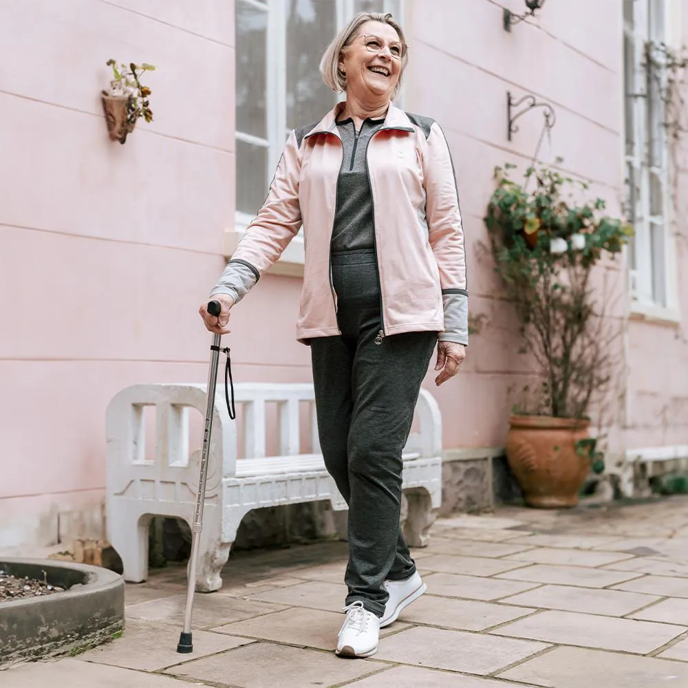 Apoio de mãos anatômico e ajustável, sem necessidade de desmontar a bengala;
