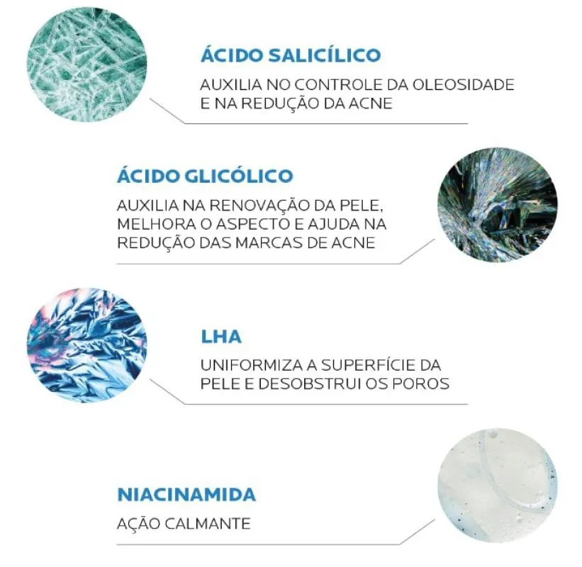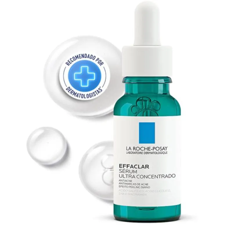 O Effaclar Sérum Ultra Concentrado possui uma combinação única de ativos que formam um complexo tri-ácido antiacne que auxilia na renovação da pele e na redução de marcas de acne, e ação calmante que diminui os desconfortos da pele, proporcionando uma sensação de pele mais fresca, limpa e purificada. Dia após dia, a textura da pele é melhorada e as marcas de acne são visivelmente reduzidas.