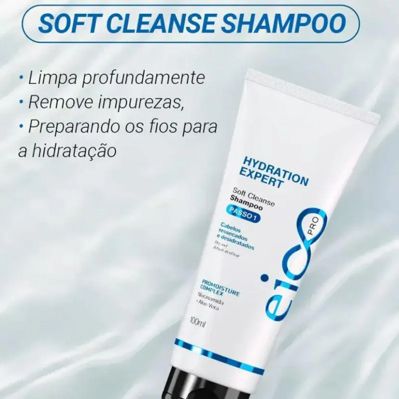 - Aplique o Shampoo Eico Pro Hydration System, massageando suavemente o couro cabeludo e os fios.